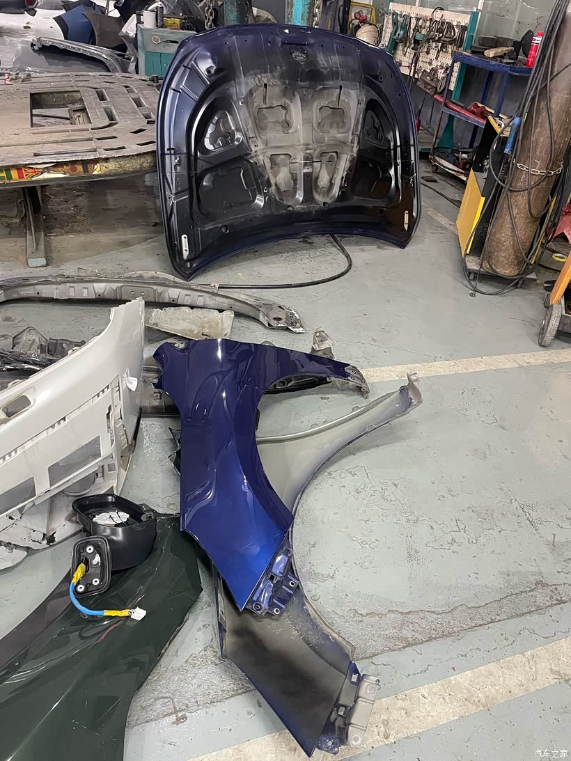 换了机盖,前挡玻璃,两个翼子板,锁扣,中网,行李架也换了
