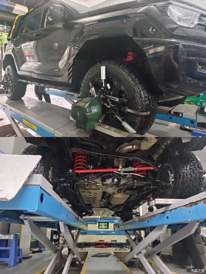 十层越野胎做动平衡时确实不太容易,大家一定要找个水平高靠谱的地方更换,换下来的公路胎放某鱼出售中,有需要也可以留言这里要表扬下400的空间了,我把后排座椅打倒,燃油版是可以绝对放平,背了五条越野胎加上露营的座椅都放下了,空间真的大,这也是我没选择700(座椅不能放倒),普拉多(台阶式大电池),烈马的原因之一。有关避震的改装就较为专业了,推荐去专业的改装厂施工,而不是再晚上买配件,然后随意找个地方装。而我一开始没想着装避震,这也是我购买275轮胎的原因之一,285的轮胎低压时原厂避震状态下会擦到挡泥板,原厂避震在一般强度下的越野是够的,但小伙伴们都改了,天天晚上刷着视频看到装了氮减和原厂避震的对比效果视频,让我心中种了草。看了 科曼,沙溪等等,最终选择了最成熟的科曼中东沙漠版1.5寸升高,这也是改的最多最成熟得,官改也是这套装。