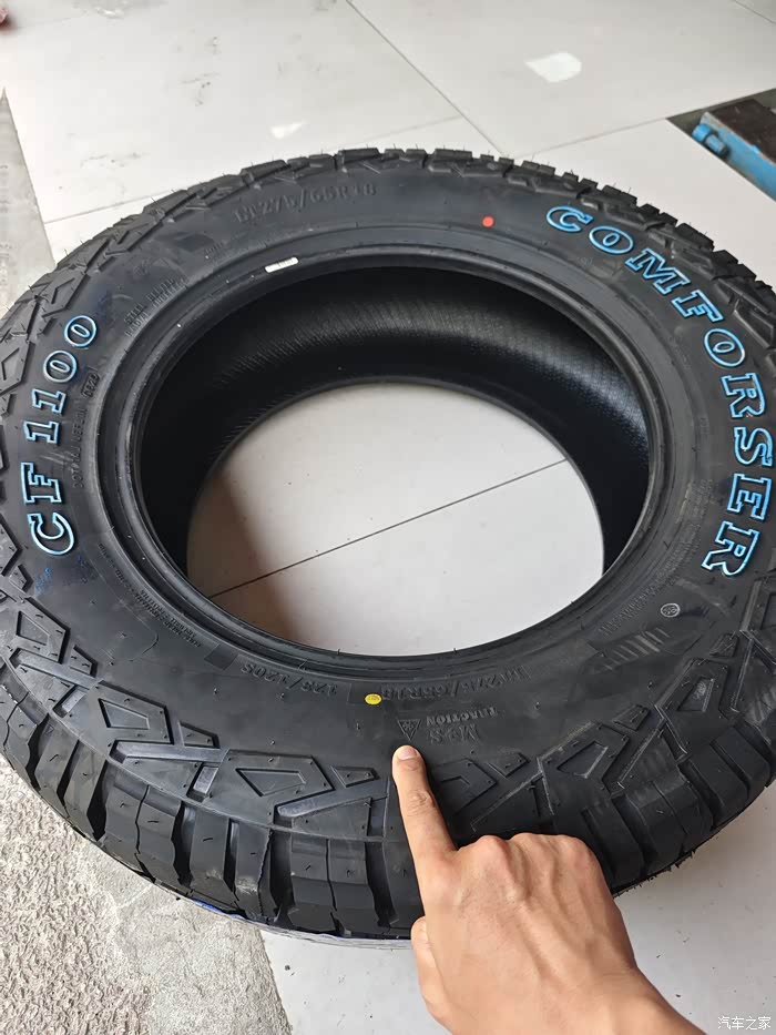 思前想后,作为越野车,肯定要换越野轮胎,目前市面上有AT胎和mt胎两种,如上期所说,我改装第一原则是均衡,综合性能,而不是某一个方面的偏科,所以我选择使用综合性能还好的AT胎。这里要说明下为何不选购原厂加2000元的AT胎,那种是主打舒适的6层AT胎,在实际越野中强度是不够的。而所有的十层结构,侧壁防穿刺的轮胎至少是275,或者285匹配18寸的轮毂。400的刹车盘大于300,不推荐使用17寸轮毂,刹车盘距离轮毂间隙太小,容易卡石子造成行驶风险。市面上此类轮胎有百路驰,科马仕,固铂等等,一开始没想换轮毂,没想着升高,想着均衡一些,所以选择了科马仕275的轮胎,十层防穿刺,侧壁防穿刺,带雪峰标志。