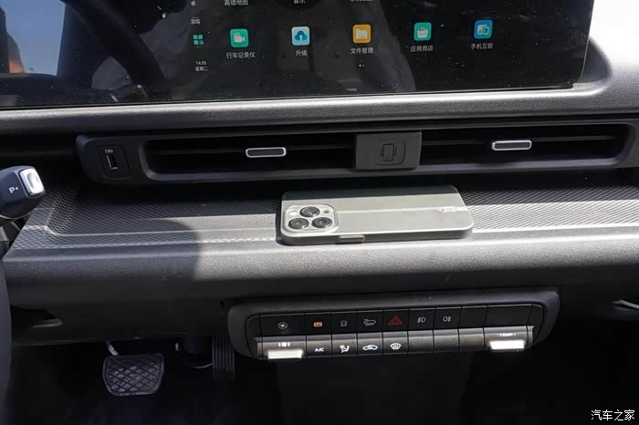 整个中控台都是双层设计,下面支出的部分可以直接放手机,而且这个中控台那么长,装其他东西也方便。