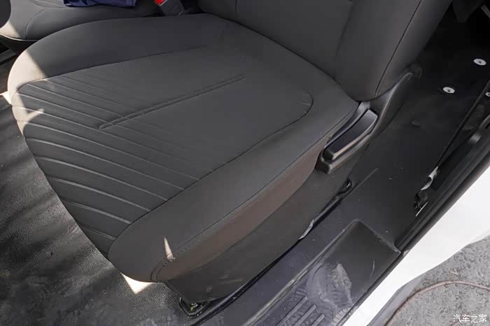 虽然这是买来拉货的,但座椅配置一点也不寒酸,主驾可以前后调节,靠背也随便调。座椅不硬,填充厚实,织布材料透气性不错,坐着挺舒服的,不会闷汗。