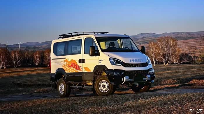 这就是基于欧胜底盘打造的原厂依维柯四驱,这外观真的不用多说,帅就完了。全新设计的前脸,机甲风满满,还有专属的四驱标识。