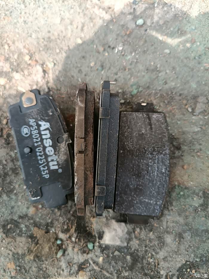 刹车响了有2个月了,以为是其它问题,没有管,先发现在右边,最后行驶中拉手刹,不响,才确定右后刹问题,本来准备网上买,想着也不大差价,本地200元买了,周日下午休息30分钟就开工,先有问题的刹车解决,顶车架,还是不够,再弄个顶悬架,才能拆轮子,放在车架下面(为了安全),拆二个罗丝,以为很难,很好拆,然后下泵弄了半天,有个泵支架影响下(下了管的支架),稍打了下就下来了,然后看片上上去对不对,可以没有错,然后再上泵,不行,泵得缩回去,找地方顶住往里打,最难,弄了十分钟不只,装上简单了。大概30分钟弄完,还有时间,顺便一对弄了,左后,这个就越来越快了15分钟左右,还有时间前轮二个,10分钟,5分钟,越来越快也容易,最后总结经验:泵缩回去用个千斤顶往上顶,用大点搬手找个支点往下顶住泵,还可再加个长的铁棍再用下杠杆原理,一个手往下压铁棍,一个手上千斤顶,最后一个几秒就回去了。拆泵就上下外有洞处用起子什么的往外弄了,稍微打下泵和影响拆的泵支架(与另一个固定泵支架),也很简单下。装上后试车,开车之前多踩几下刹车,后刹也拉几下,然后上路开找安全路段反复踩刹车,最后再大力,感觉刹车够用就行。这个片感觉还行,应该可以,磨合500公里估计就能看出性能。照片最差片就是响的个轮,后轮刹车都是动的一片磨狠,前刹车正常,我的右后轮估计泵有问题,回缩差了,再开500公里,架起轮子转试下,装时明显感觉带点刹车力,之前拆过摩托车泵,先拆了保养下,不行只有换了,,感觉影响里程数。