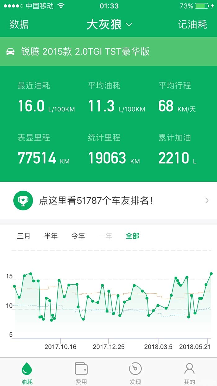 看到你这油耗心里舒坦多了,同30T两驱,12个油