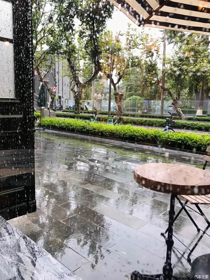 刚刚回酒店 就下大雨了
