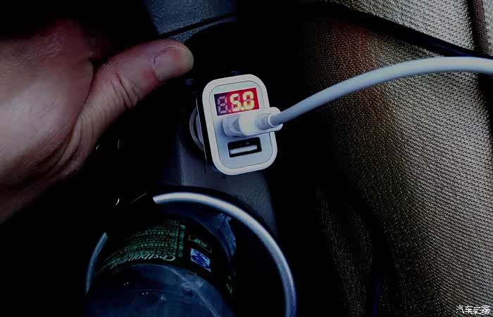 点烟器在挡杆前面翻盖里面,插上一支点烟器充电插头,可以同时检测电瓶电压和给两只手机充电。