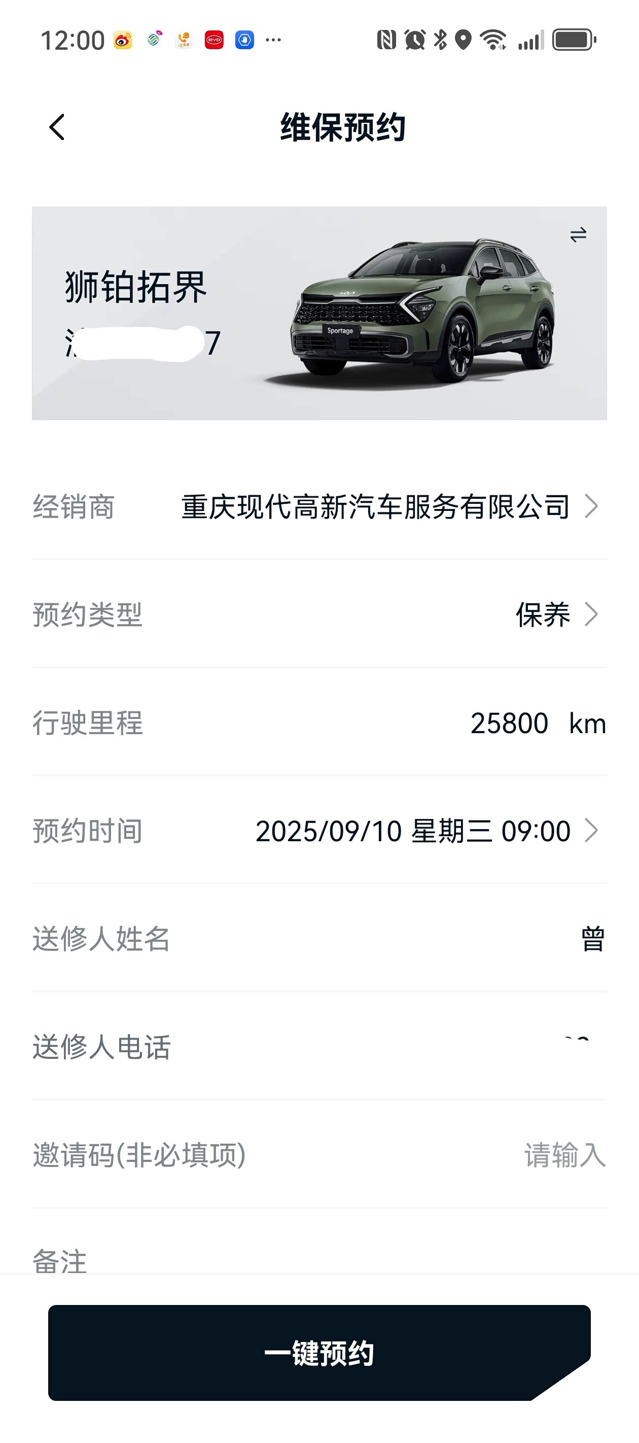 这次保养试了一下起亚APP预约,可以提前一天预约保养时间。