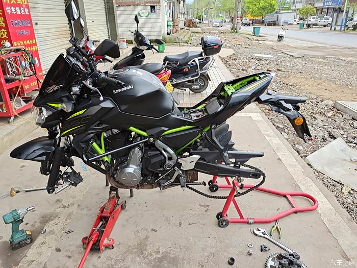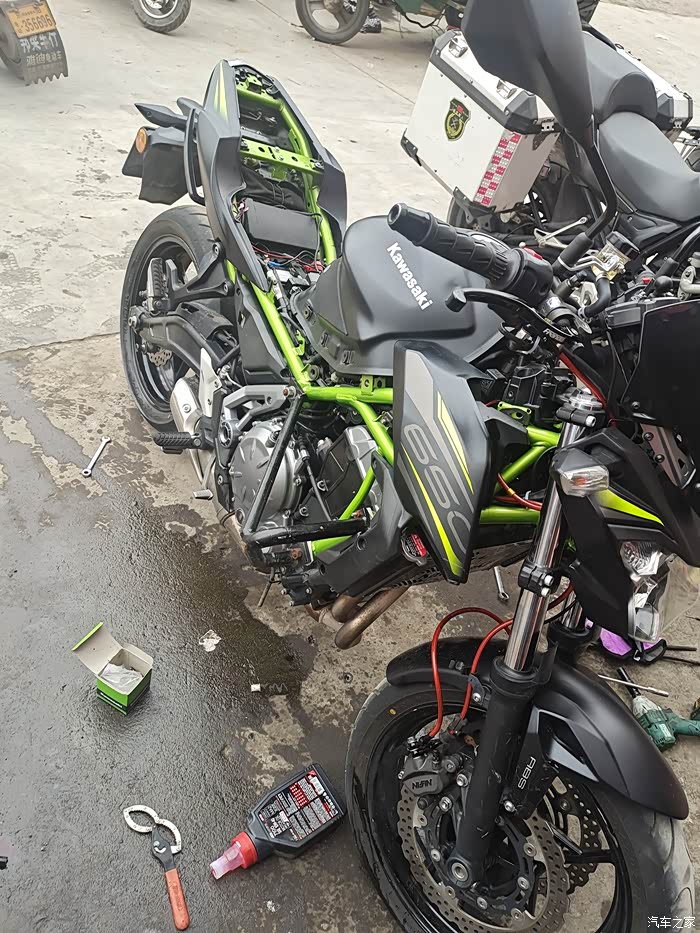 5、改装。我总共改了以下几样东西:LED大灯,雾灯,车力屋直推,钢喉,国产省力离合杆,EBC刹车片,RK链条,正新轮胎(一对刀疤已用报废,现在用的正新蛇纹),刹车油,冷却液。保养时一直用的泰国产原厂机滤,雷神10W-50机油,最近保养加的7100的10W-40机油,感觉比雷神的好。
