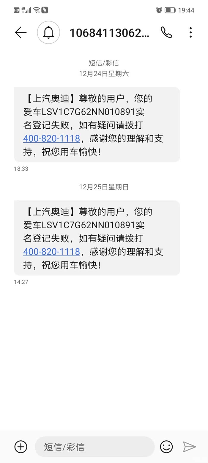 9、实名认证,车机激活问题,现状我车还没激活,上汽奥迪APP填写了6-7次资料,每次都不行,半天才反馈,说我身份证日期对不上,工信部实名认证不了。我就想问下,我办电信卡的时候人家为啥就行。