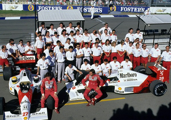 1990年Mclaren-Honda全家福,与塞纳并肩作战的是奥地利人杰拉德.勃杰