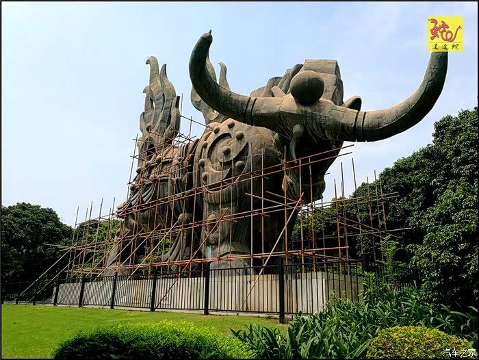 “盖世金牛”大型艺术雕塑,由我国当代美术艺术家韩美林设计、著名剧作家魏明伦为其作赋、书法家康赢题碑制作而成。