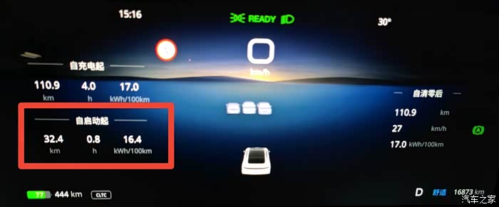 节目结束到家后,我拍了一下岚图追光的电耗,我全程往返采用了舒适驾驶模式,全程30公里,电耗16度,还是对这个数据满意的毕竟一路在用车内电器,还是舒适驾驶模式。