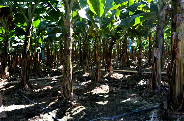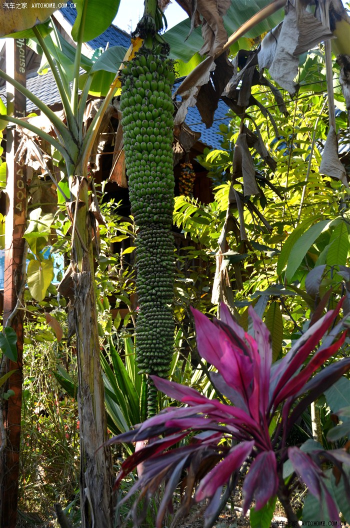 周围的香蕉林也是一道亮丽风景,繁茂的蕉叶在阳光的映衬下浓绿欲滴、熠熠生辉,不断诱发大家的拍照兴致,已近下午1:00点我们才回到预定的“野菜傣味餐”饭店用餐。