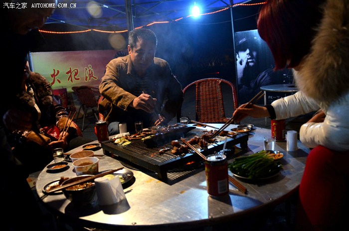 尽管已是午夜时分,一天的驾乘折腾早已令肠胃消磨的有些空虚紧张,在酒店值班的推荐下,我们来到附近一家路边夜店吃起了“西昌烧烤”。