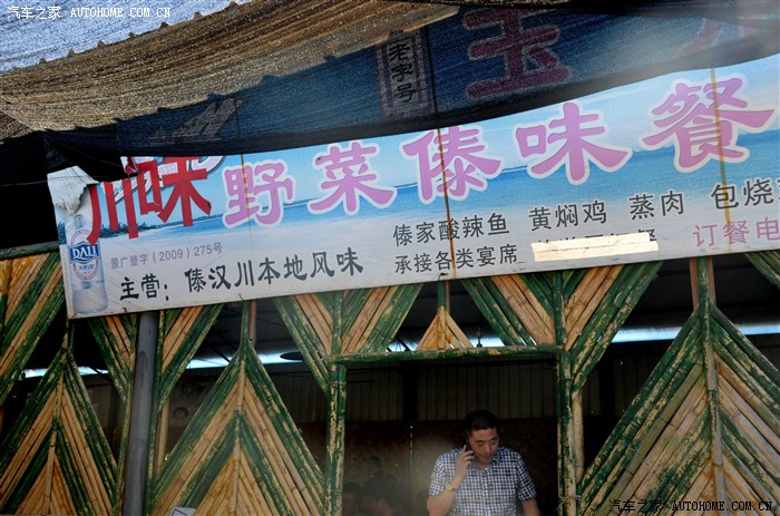 好在后来一路泼洒的金色阳光增添了不少好心情,过雅安后车流终于开始加速,下午2:00点左右到达荥经生活区,本想在此休息就餐的,可一见偌大的服务区居然变成了露天车展和汽车博览会,就连过境的高速路边都停满了车辆,其中挂成都牌照的占绝对优势。