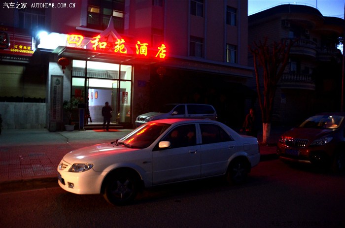 西双版纳的阳光真的是光芒刺眼,如果遭遇逆光行驶会斜射得你完全看不清前方的任何物体,必须借着遮阳板小心慢行,加之又赶上市区车流高峰,走走停停两个多小时,接近晚上8:00点才到达预定的四和苑酒店,单价为300元/标间,环境卫生说得过去,如在平时其价位只有100元上下。