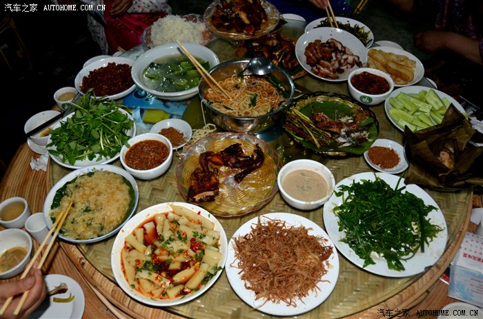 下午1:00点我们顺路来到一个叫阿卡山寨的地方午餐,就餐环境充满了自然朴素的乡土气息,菜品不错、收费合理。周超不愧是做旅游生意的,知道主动调节客人胃口,受到大伙一致好评。