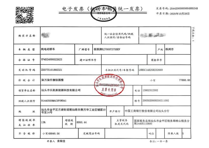 购车政策:2025年10月购车时,极狐推出“国补+省补+限时权益”,但是由于10月15后汕头市国补很难抢,我直接购买放弃了国补。