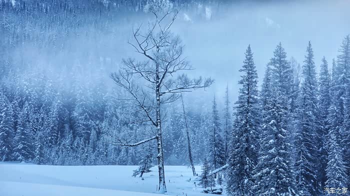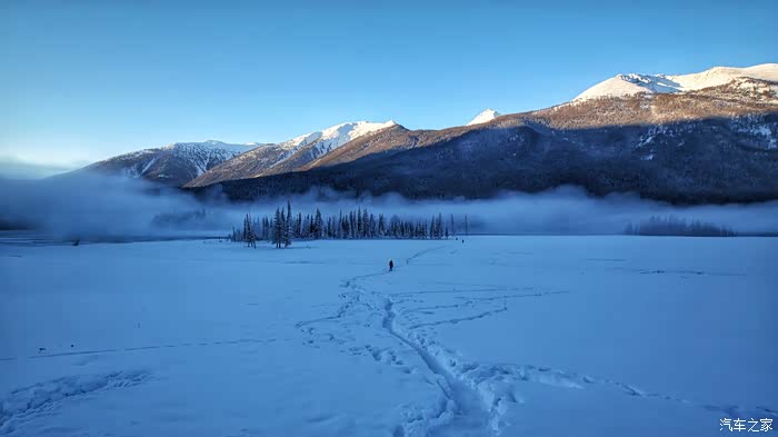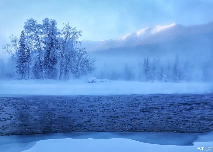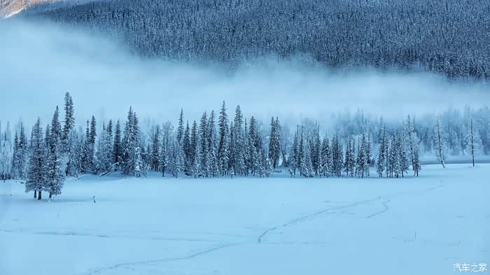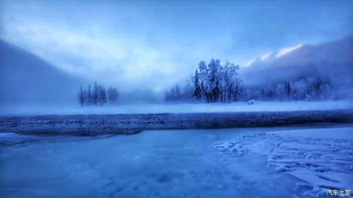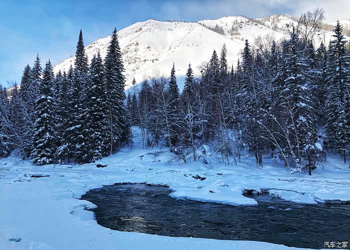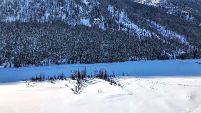 冬天的喀纳斯湖很安静很美丽,阿勒泰山也因此更加灵动。