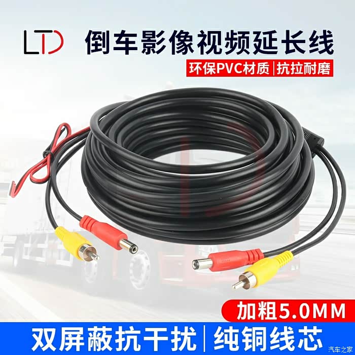 其中黄色圆头都是延长线。红色是倒车电源线,一根就可以。倒车时给摄像头一个12V的高电压,摄像头通电。