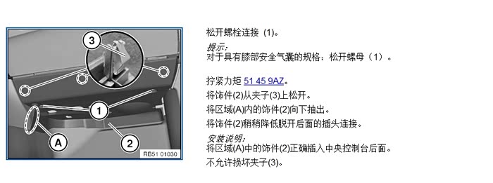 上图中,拆侧面螺丝和下面的手套箱灯泡插头。