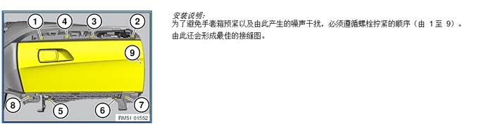 至此,手套箱拆下来,记住,总共是9个螺丝。如上图中黄色区域所示。