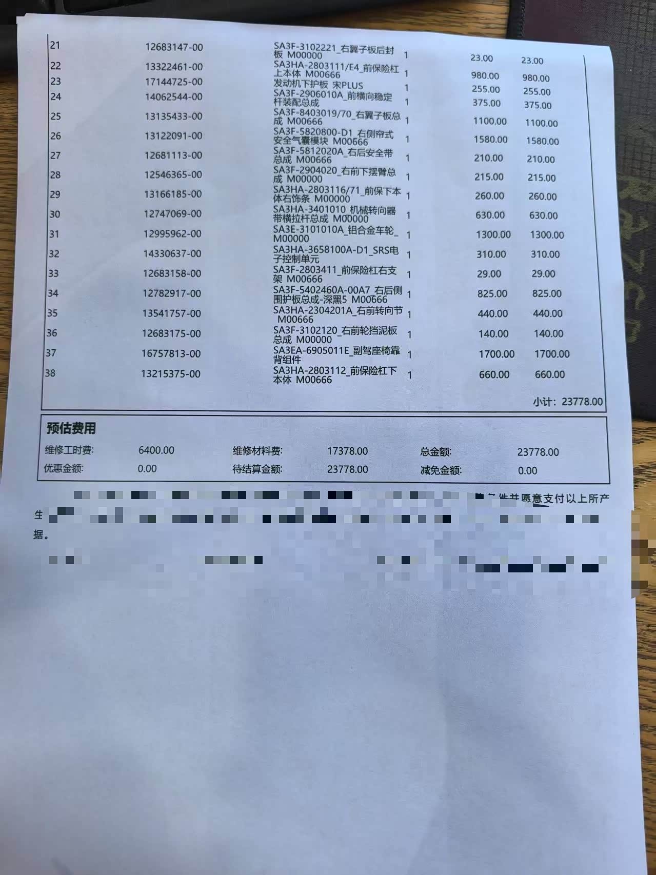 比亚迪4s店服务还是可以的,基本上有问题的地方都换修了!不过大家开车还是要注意安全!人没事就好!在国道乡间小路要注意支路开出来的车子,虽然对方全责,但是车子折旧也是影响很大!这可是算事故车了。两年多两个月。蛋疼啊
