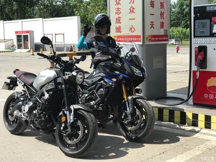 XSR900和我这台tracer900都是由雅马哈MT09街车发展而来、属于三兄弟。同一款引擎、车架。搭载YCC--T电子油门、标配TC牵引力控制系统、三个骑行模式。我给Tracer定位它就是一个公路运动旅行车。而XSR900这个外观看起来古典的造型、实际上当你跨上车他的坐姿是比较运动的感觉。脚踏的位置并没有因为是复古而调低。和街车版、旅行版位置一样。马力也是116匹一点儿没少、不过好在三个骑行模式的选择。如果环游在湖边公路,我更愿意用B模式。