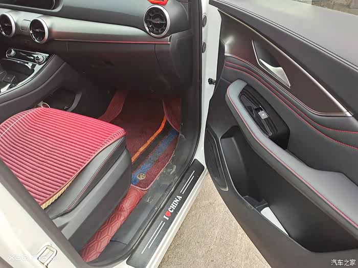 买下车没舍得投资什么,就是加了个坐垫,前控台的垫子,加了个迎宾条,买车的时候赠送的太阳膜,大包围脚垫 和后备箱垫子