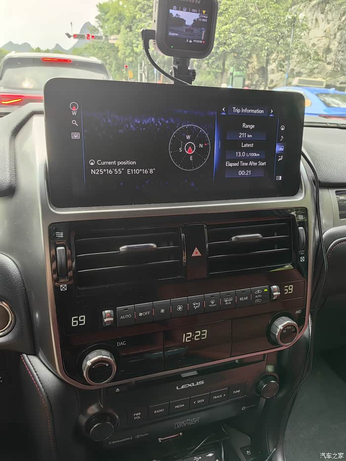 周末桂林游玩,从深圳出发,返程的时候,从桂林平乐南服务区到广州增城区荔城服务区来一次自测油耗,485公里,消耗49升燃油(49升跳枪后加到49.29升,凑人民币整数),平均油耗10.1升,驾驶习惯为:进隧道80(极个别隧道是100,不超过2个),标100跑100-105,标120跑118-120(因为公里和英里表重叠,老是把英里表看成公里表),另外,我的黄金右脚秘诀就是:跑快了就松油门溜车(特别是下坡路),溜到限速后再踩油门把速度提上去,不是一直轰油门不松脚,PS:坚决不用雷测定速巡航。。我觉得460高速省油的硬条件就是:一是八缸可以把转数压低,平路120时速是1800转,二是460车身不大,车身窄(高度1885也是含了行李架,实际也就1850这样子),风阻系数相比其他较大越野车要小一点,三是车身重量行驶证标注2360公斤,但我刚提新车,空车,满油,我一个人,那时候还没铁牌没行驶证,不能安装ETC,走人工通道带有电子称的(货车专用通道),显示是2340公斤,我人是70公斤,那空车也才2270???因此重量也不算太重(如果是带底升版本的顶配估计就是2360了),对比一下,查了分时霸道3.5的体重也在2285到2305