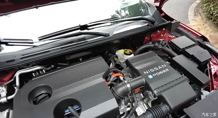 轩逸e-POWER主打的卖点是“全时电驱动”,其动力系统的基本结构是串联结构,动力从发动机到电池、再到电机、车轮,烧的是汽油,发动机全程在幕后,1.5度的动力电池只能支持5公里纯电行驶,不能外接充电同时也不能挂绿牌。相比丰田THS和本田i-MMD那样较为复杂的能量耦合方式,e-POWER的结构要相对简单、紧凑。掀开机舱盖,可以看见它左侧部分为一台1.2L自吸发动机,右侧为电机,没有变速箱。