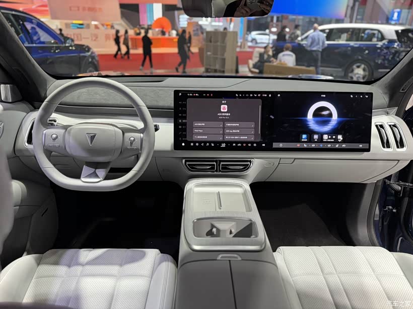 再说说内饰,一打开车门,温馨舒适的感觉扑面而来,浅米色的色彩搭配就像在家一样自在。三辐方向盘握感舒适,操作很顺手。车内取消了传统仪表盘,通过AR - HUD就能获取行车信息,科技感十足。连体式中控屏和副驾屏一直延伸过去,显示信息丰富,操作便捷。最让人惊喜的是前后可移动的岛台设计,这在SUV里可不常见。中岛有手机无线充电功能,还有一台10L的冷暖一体“冰箱” ,温度能在-6℃~50℃之间调节,夏天喝冰饮,冬天喝热饮都没问题。前排座椅有记忆、通风、加热、按摩等功能,第二排是独立非航空座椅,功能和前排一样,按键在扶手内侧,操作方便。第二排右侧座椅还有小桌板,吸顶式娱乐屏也能给旅途增添不少乐趣,有孩子的家庭肯定喜欢。