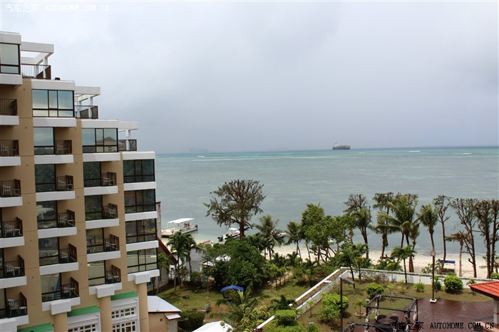 4月16号我和老婆拖了个拉杆箱背了个包在没啥准备的情况下踏上了蜜月之旅 ,因为婚假安排的问题,我们没有太多的选择,只要时间和我们配上,去哪个岛都没问题,提前一周找了个旅行社就敲定了,去浦东机场直飞塞班岛,因为是跟团所以没啥可操心的,唯一担心到了塞班入关问题,开始旅行社不同意我们跟团(签了免责协议),因为老婆怀孕快5个月了,有很多中国妈妈去那边生小孩,幸好安检的黑胖子没有看出来,非常热情,问了我们是干嘛的来干嘛就算过关了,所以各位准爸准妈们不用担心啦,只要身体状态好就大胆安排出行吧,美丽的风景是最好的胎教嘛,哈哈!22点40的3U头等舱,塞班时间凌晨5点多落地就到酒店休息了,远处是美军第七舰队的补给舰。