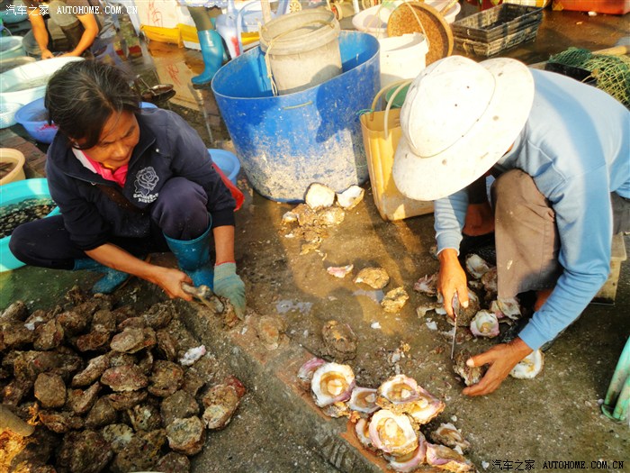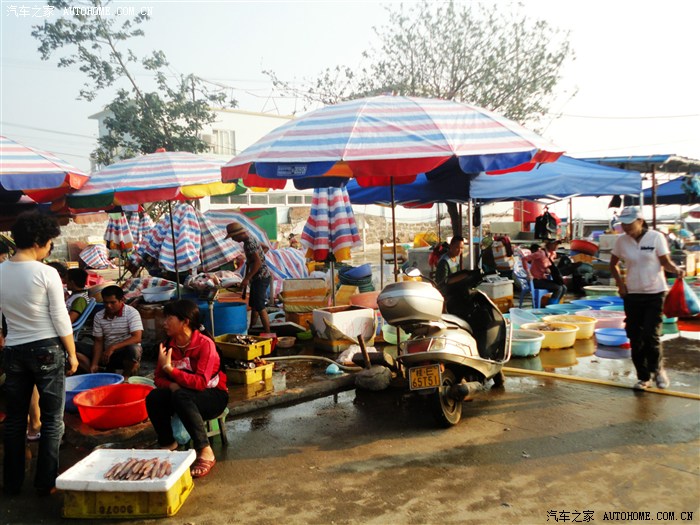 岛上的旅店除了可以提供早餐外,午餐和晚餐需要自己去市场买菜、卖肉、买海鲜,回来交给店家,一道菜收加工费10元。岛上只有一个菜市场,路很远。我们租车在岛上游览景区后,特意让司机带我们去菜市场。涠洲岛的海鲜不贵,而且很新鲜。海鲜市场就在码头边。