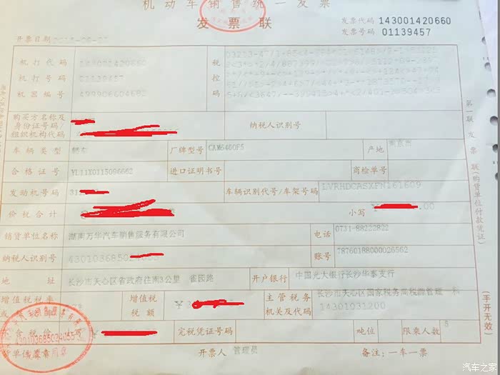 最后提车到是挺快的,车8月18号晚上就到了,15号我就接到4S电话通知,我19号早上周五就提走了,什么红绸布都没挂,车子就开了5公里,8月出厂,我19号就到长沙上了牌。(我是外地上长沙牌,怕以后限号什么的,暂住证等手续我7月25号那天就已经给了4S店钱统一办理了)。结果就是早上10点到店,付全款、缴税、买保险,去吃午饭(车正好加装送的贴膜之类的东西),2点回到4S店开车走去上牌,5点回,和销售打了个招呼彻底闪人。。。
