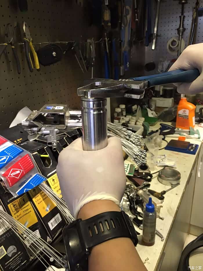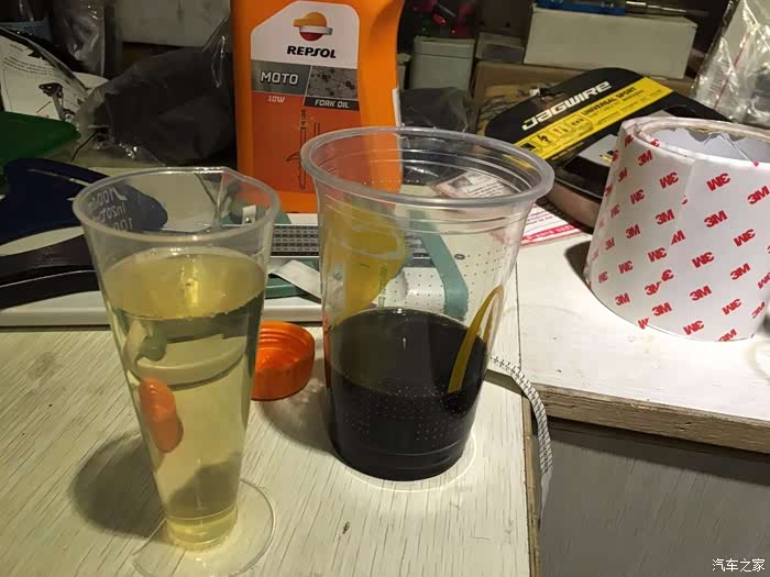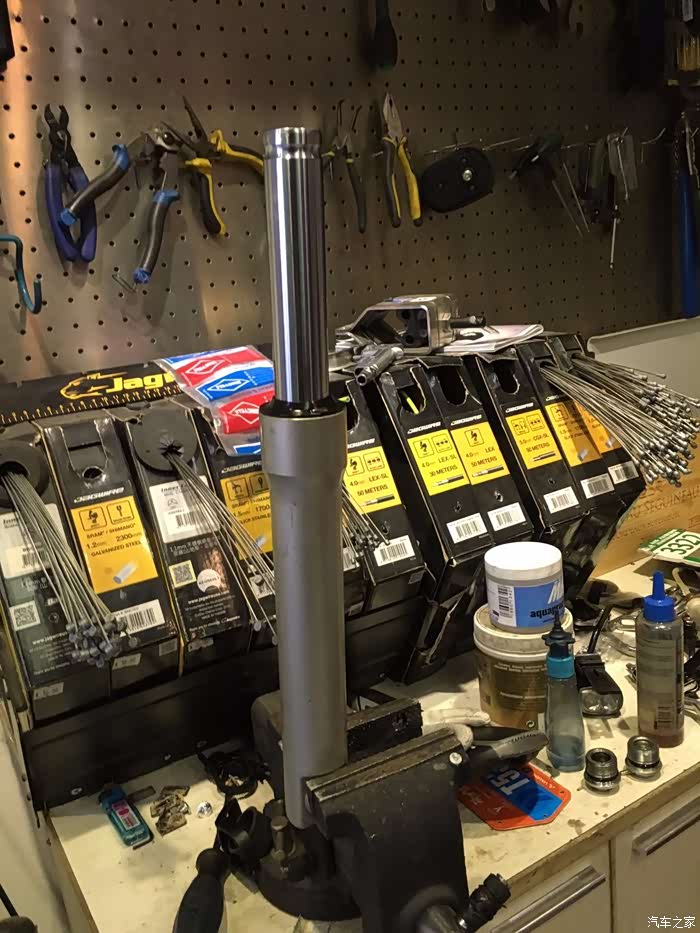骑行到2017年冬天的时候,大约是在1W公里,很明显的感受到了前避震踏踏实实的打底现象,预压也是相当的低,第一反应是漏油,但是通过检查前叉,觉得并不是问题的核心,也在度娘上看了大量的大神贴,得出三个结论,1、原厂甲鱼的前叉弹簧偏短,且直径偏细;2、无论是制造原因或是使用原因,导致前叉内管的前叉油,油面减少;3、长期使用过后,避震油肮脏,影响回弹。