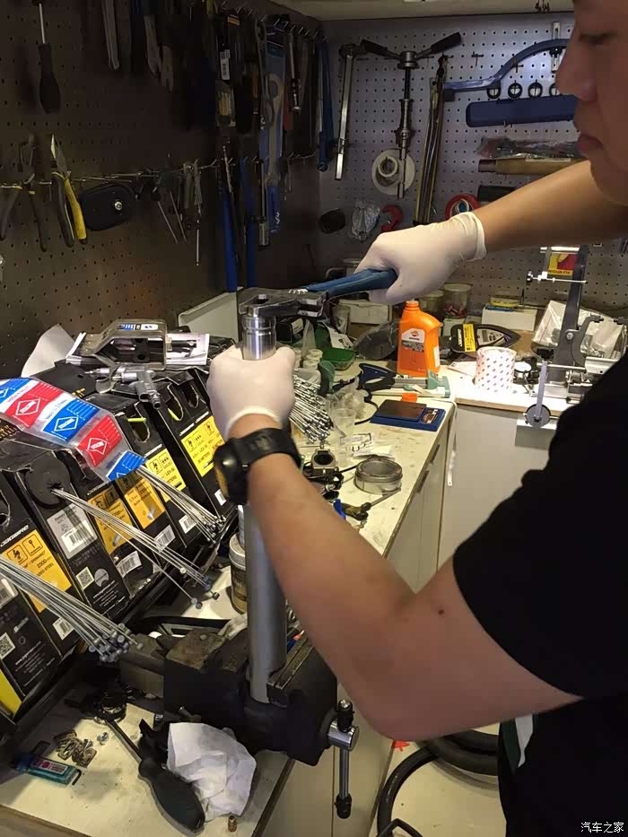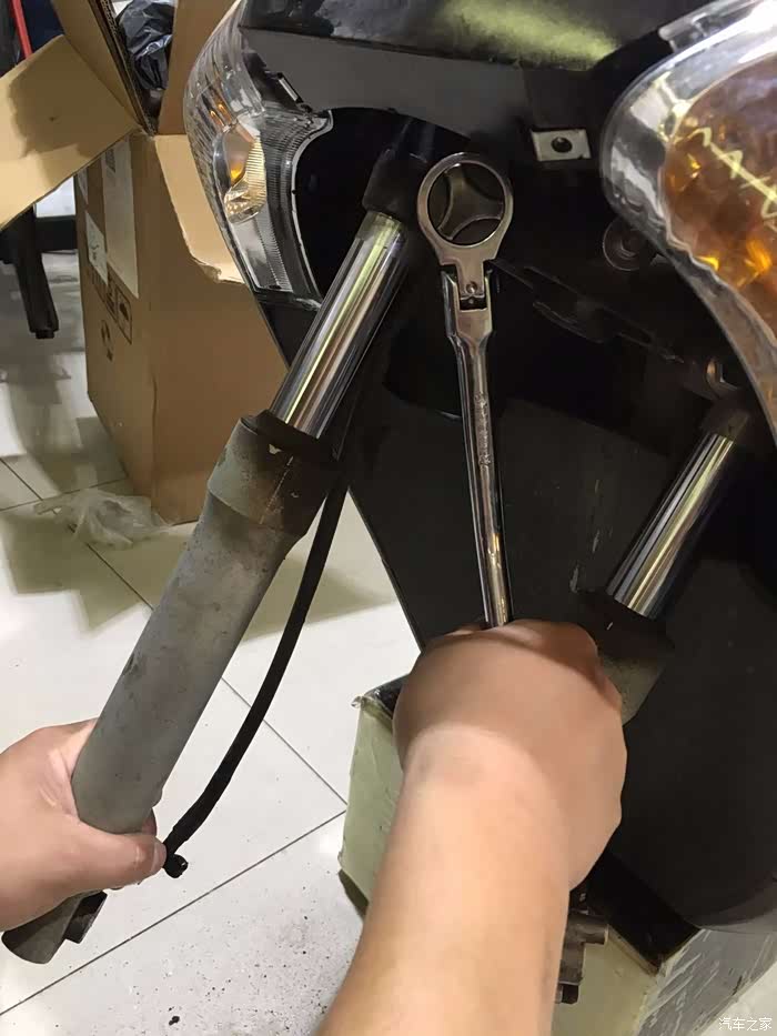 去车行咨询过,普遍不提供改装件(后避震倒是有外贸件可以更换),如果自己买辅材和避震油,车行伙计也都委婉的说没时间搞,同时一再和我强调被必要,毕竟就是甲鱼嘛,骑骑就好,也骑不坏,其实大家说的都没错,但是骑行体验是只有自己长期骑行当中感觉到的,悬挂的问题既然有,就一定会在驾驶时有担忧,可以这么说,85公里限速我可以忍,但急刹车和过坑打底,我忍无可忍,再加上有自行维修和保养自行车前叉的经验,还是气压避震的,我认为甲鱼用的避震的结构其实是非常简单的,几乎没有什么科技可言,无非就是机械结构式的组合,我觉得花400块买回来直接安装,虽说省事,但是完全没必要啊,内外套管都一样,就弹簧不同,还是自己来吧。
