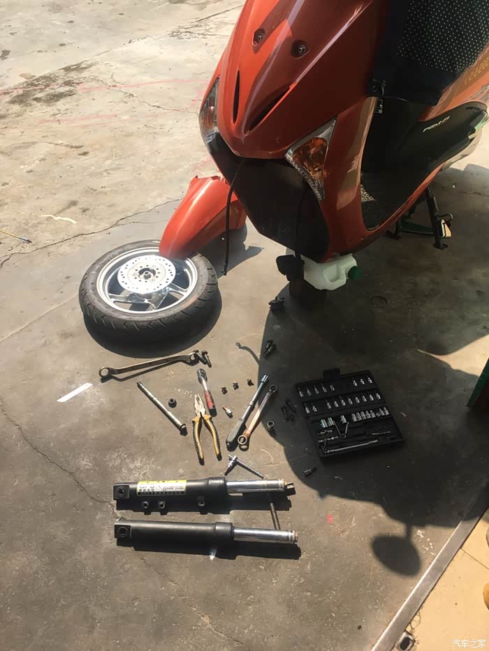 拆除轮组,刹车,挡泥板等等,建议拆除前避震后上台钳打开封盖。这是原厂弹簧和升级的弹簧对比,上面的是原厂的,下面是购买了升级的。顺便用干净的避震油清洗一下内管。台钳固定好,准备灌入新油,到多少呢?通过标定和测量,原厂的避震油倒出来后,只有54g,两罐倒出后的液面也就只有80ml不到,可想而知损失还是很多的,而原厂的说明书写到,单管的液面就是80ml。使用了1W公里的避震器,倒出来的油脏的非常明显,右侧黑油是两根避震倒出来一共就这么多,左侧新油是一根避震的用量,亲们可自己想想。为了避免误差,电子秤得用,同时说一下,威爽和速马力的避震油都是可以用的。清理完毕,倒入油,放入新弹簧。打完收工,装车。&n...