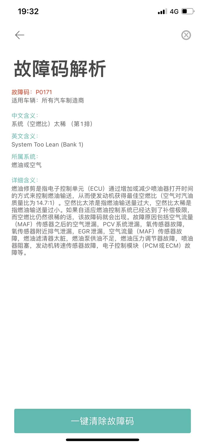 爱唯欧1.6自动发动机灯亮,OBD测出来的结果。求大神定