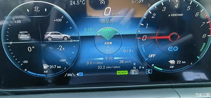 用舒适模式的时候显示D2-9的时候是变速箱启动,电动模式下显示outu是电机工作