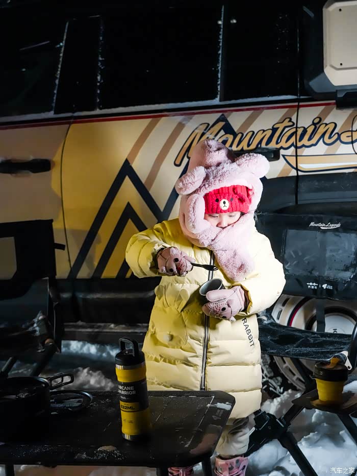没雪怎么能叫冬季露营?特意选了一天开启露营模式,有车之后露营都方便了很多,直接展开车载天幕,用不了几分钟就能快速拥有一个小营地。从装备箱里拿出用具,椅子一摆,就能享受雪景了。虽然有点冷,但咬咬牙还能忍。
