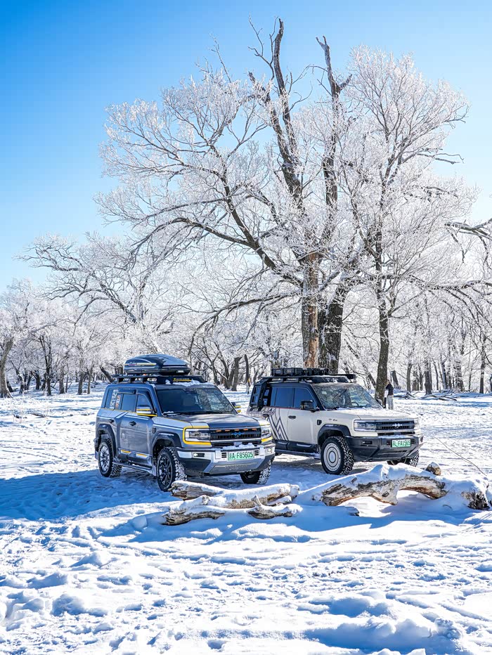 冬天必去的地方一定是东北!对于南方人来说,东北的雪实在太有吸引力了。没有一个角落能逃过白雪的覆盖,只要到室外,就像是踏入了一场冰雪电影。这次一共有十辆方程豹结伴而行,大家一路都开得很谨慎,但到了积雪厚的还是避免不了陷车。好在每个人都是资深户外玩家,装备带的都很全,能够互相救援。