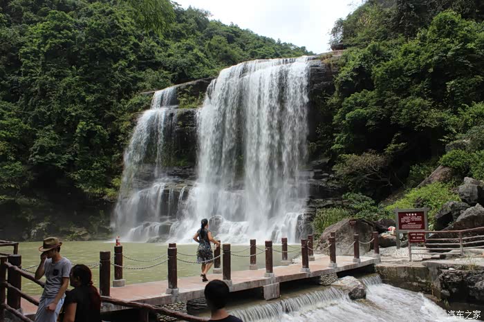 自从有了微信!整天就有人晒吃的.玩的.穿的,在这里鄙视一下万恶的微信朋友圈!老婆见朋友晒的黄满磜瀑布游玩图片之后就嚷着有时间一定要去看看.昨日农历七月十五刚好休息,早上10点带上老婆老妈开上老皇出发,原来不认识路还有点怕怕的,下载了个手机导航还不错,简单好用!跟着导航顺利到达!前一天晚上群聊揭西的朋友说他们那下大暴雨,就多准备了雨具,怕有雨,好在俺丰收人品刚刚地,到了景区既然沒下雨还是那么阳光明媚,只是水有些浑浊!!导航显示56.84公里黄满磜瀑布群位于广东省揭西县京溪园镇粗坑村,粗坑河上游,河水至此奔流直泻,形成宽八十米,落差近百米的天然瀑布。享有“岭南第一瀑”的美誉。千米河段上有多级瀑布,其中飞虹瀑布落差...