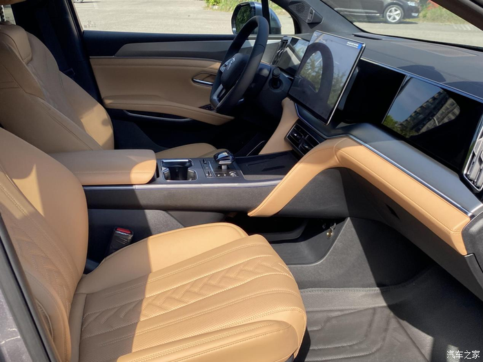 宋L DM-i车里面空间比较大,前后排和头顶的空间都非常宽敞。全景天窗、打孔座椅,前排座椅还带通风加热,确实比较舒服,感觉这内饰在这个级别也算是同级车的天花板了吧。