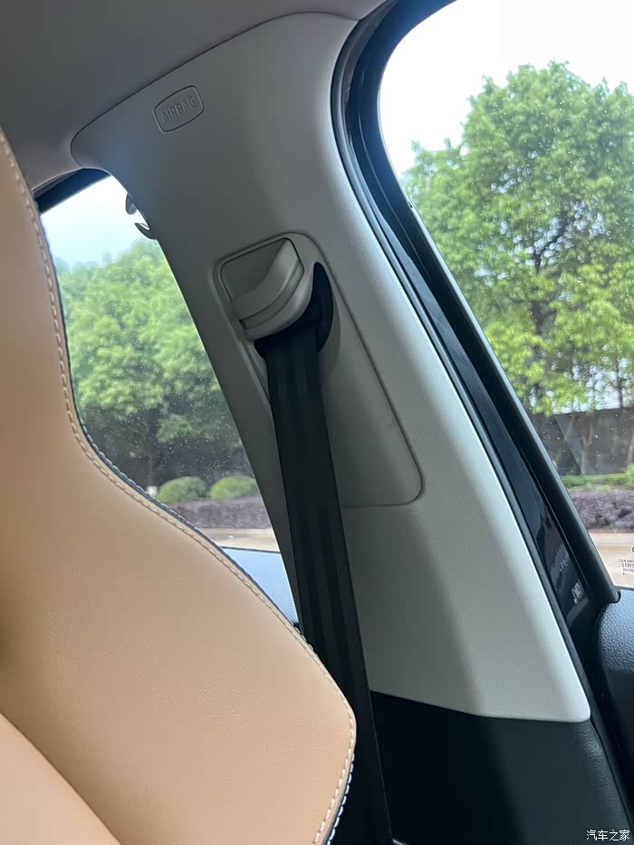 第四个呢就是我们上车就要系的安全带,它其实是可以调整高度来适应不同的驾驶员。调整装置就是在靠近B柱的位置,免得上半身没那么高的驾驶员坐上来被安全带卡住脖子就尴尬了。