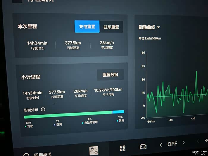 没跑高速,就在市区上下班开开,最近天气比较好,基本没有开空调,就下雨天开了下除雾,音乐和导航每次都会安排,对这个续航表现还算比较满意的。