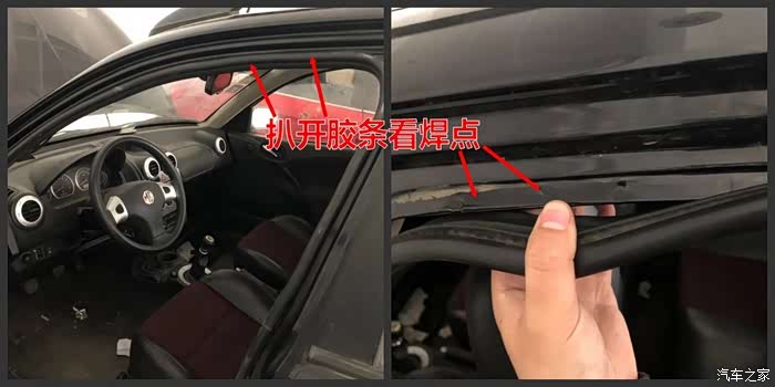 今天,这里,我想说的方法,和你们在网络上的看到的大多数方法是一样的,也是拉开胶条查看焊点来确认ABC柱情况,这里我就不再赘述!