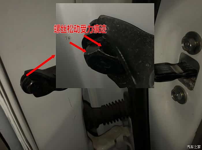 我们再看限位器和车门连接位置螺丝以及门锁螺丝,如果这两个也有拆卸,那车门更换无疑了