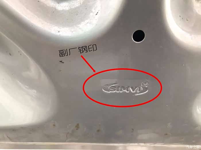 相信细心的小伙伴已经发现了,这个莫不又是副厂钢印?对,就是它,在引擎盖检查文中我说过,原厂件要么没有副厂钢印,要么有自身品牌的钢印,这里同样适用,这种不是自身品牌的钢印,就是副厂钢印,还有这种款式