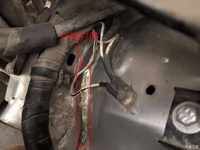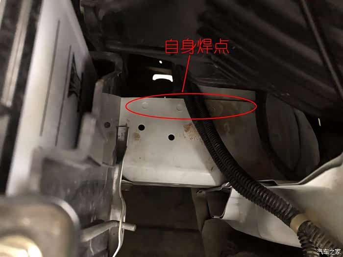 那么,如何判断纵梁有没有整体更换?前面已经说到,纵梁是以焊接方式同防火墙减震包连接,而要更换纵梁,原有焊点肯定需要被剔除,更换后则需要重新焊接,也就是说,当两个连接处同时有后期焊接,纵梁就可以断定有更换!如果没有作假或者精修,后期焊接往往不难发现,难点在于,有一点需要我们甄别,这些后期焊接有没有没被故意掩盖,而焊接作假,无非就是做假焊点,在之前***中,我和大家提过原厂焊点的一些特性:平底 边缘有斜坡 冲压痕迹,这些同样适用于此,如果你发现焊点不符合这些特征,那就要高度警惕咯!后期打胶一般可以通过成色和手感对比来鉴别,可以左右进行对比,后期打的胶往往成色较新,并且触感会比较软(水分较多),下面我们看看实例